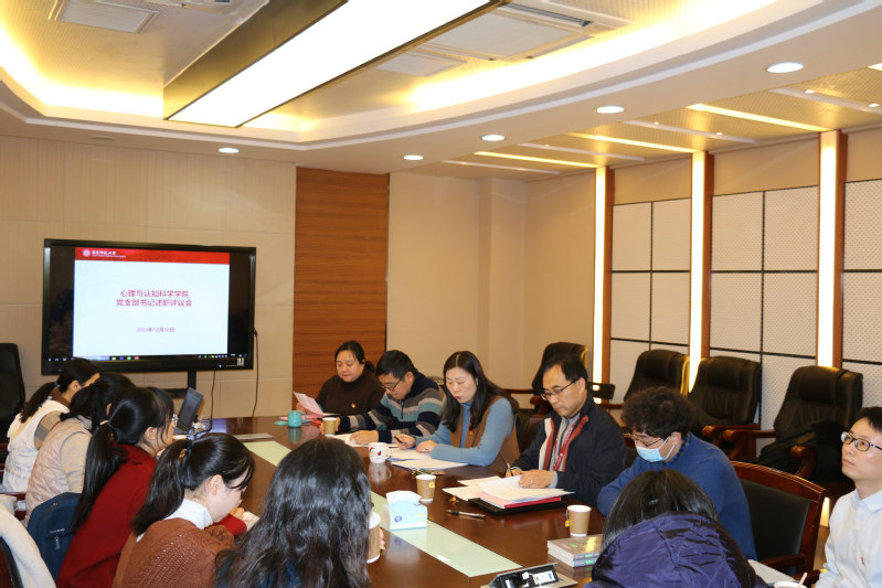 本次支部书记述职评议会,彰显了心理学院党委全面贯彻落实从严治党和加强党组织建设的决心,对过去一年各师生党支部建设的情况进行了总结,对工作的不足进行了反思。新的一年心理学院党委将继续坚持以习近平新时代中国特色社会主义思想为指导,以党的政治建设为统领,严格落实全面从严治党责任,巩固提升“四史”学习教育成果,全面加强党的基层组织建设工作,为推进一流心理学科建设和学院各项事业发展贡献力量。