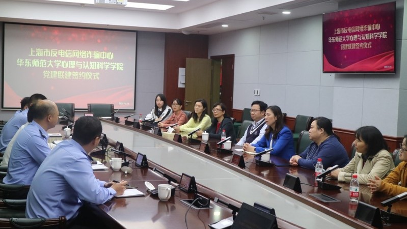 我院方媛书记发言中介绍了华东师大心理学院的历史沿革与发展成就,展现了心院在人才培养、科学研究、社会服务方面取得的成绩,在区域化党建方面的主要成果,表达了更广泛更全面地将科研成果投入应用、服务社会的殷切期望。她指出,此次党建联建在三个方面对双方有很大的促进和提高,首先,双方能够通过联合开展党日活动、“四史”教育等活动促进思想建设;其次,通过双方的共同研讨学习和课题研究能够进一步增强心理学的社会服务功能,切实解决广大人民的迫切需求;最后,双方的合作对于高校人才培养有着重要意义,当前大学生法律意识和反诈骗意识较为薄弱,需要中心对大学生进行宣传教育。她强调,如何切实提高上海市反电信诈骗受害人防范意识,做好“心防”建设,是心理学老师和学生应该主动承担起的社会责任。