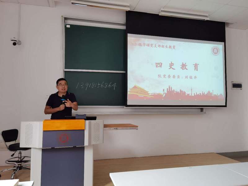 院党委委员刘俊升结合亲身经历和自我感受,用朴实深刻的语言向新生党员讲述了学习“四史”的重要性,以及该如何学习“四史”。他从思想上、行动上提出了要求,希望新生党员能关心社会,关爱身边的人,做一个对社会有贡献的时代青年。