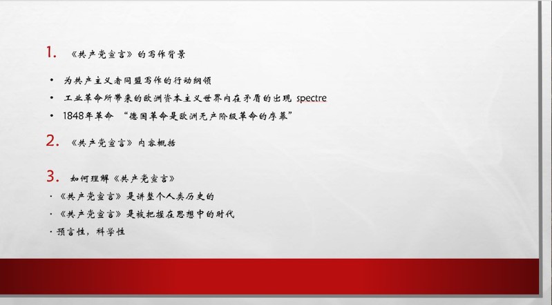 h动漫 2019级硕士研究生范玮和国际汉语文化学院2019级本科生沈清琪分别代表学习小组汇报了《共产党宣言》阅读感想。他们描绘了当时欧洲资本主义世界的冲突矛盾频发和德国浩浩荡荡进行革命的历史背景,介绍了《共产党宣言》的内容结构和每一章节的主体思想,分析了《共产党宣言》的重要意义和价值。