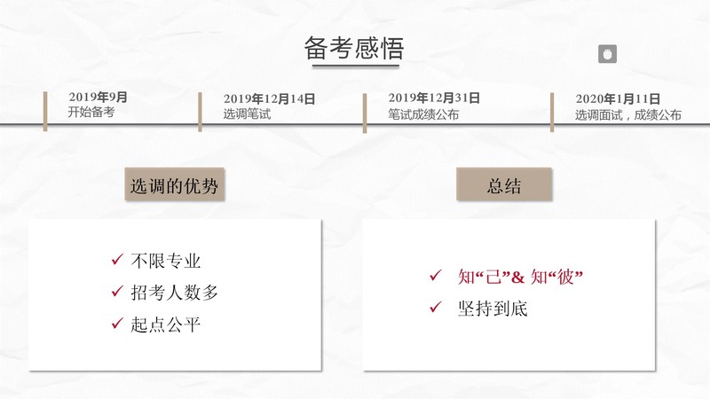 吴莹和同学们分享了自己的备考经验,包括选调生笔试的题型及攻略、面试的细节及小贴士等,并给大家推荐了学习资源。