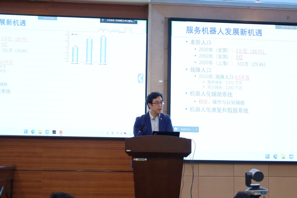 陈卫东教授研究领域包括机器人感知与控制和医疗机器人,他介绍了研究团队在地图创建、定位、运动规划与人机交互等移动辅助机器人关键技术领域取得的研究进展,重点介绍了基于激光雷达和视觉的感知与控制技术,以及在智能轮椅和移乘机器人等场景的应用实例。