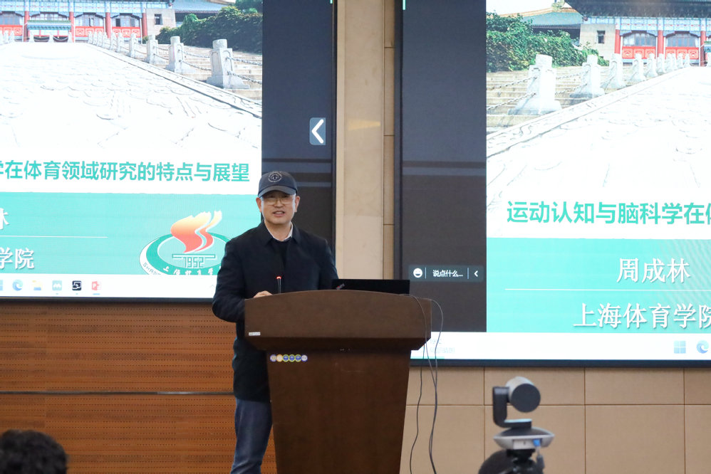 周成林教授介绍了运动认知与脑科学在体育领域的研究现状,运用ERP、 fMRI、TMS等科学手段探讨了高水平选手感知运动加工优势大脑神经活动特征、体育锻炼促进认知加工及大脑神经活动的特点、体育运动促进青少年儿童学习效益的特征等内容。