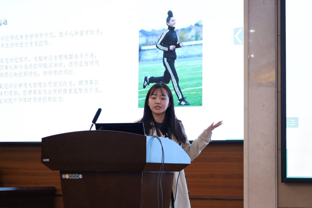 上海体育学院心理学院博士生王姁如聚焦有氧运动的情绪调节机制及其相关通路的大脑可塑性变化,发现有氧运动会导致认知重评及抑制能力提升,再通过情绪下调通路完成控制,体现了训练效益的内在机制。