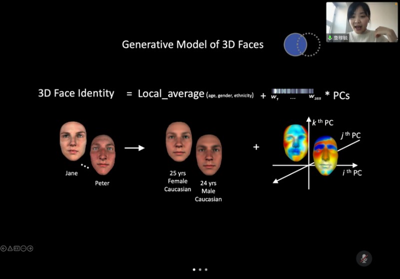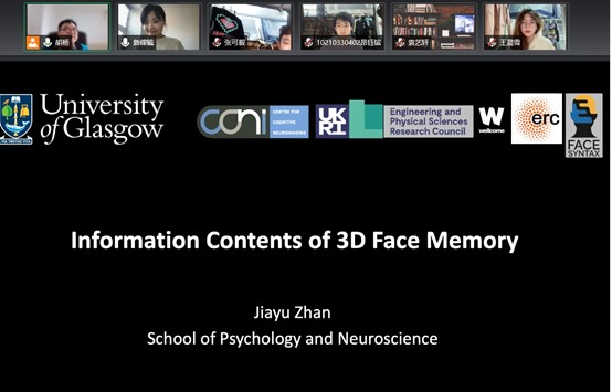 2022年3月22日下午,我院邀请英国格拉斯哥大学心理与神经科学学院(School of Psychology and Neuroscience, University of Glasgow)詹稼毓博士,通过线上会议的形式,作题为“解码3D面孔记忆”的学术报告。学院2021级“心理学+计算机”双学位班以及其他本科硕士生共计30余人参加本次学术交流活动。报告由我院青年教师胡杨副教授主持。