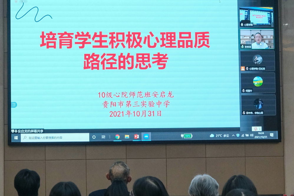 何园竹通过在线方式,作了题为“心理素质拓展活动——心晴跑”的报告,与大家分享了积极心理学视角下一项学校心育活动的设计与实践——心理素质的拓展活动:心晴跑。这一活动能够提供丰富学生课余生活的平台,加强学生参与活动、组织活动的积极性,培养学生乐观、坚强、幸福等积极心理品质,促进其综合素质的发展与心理健康水平的提升。